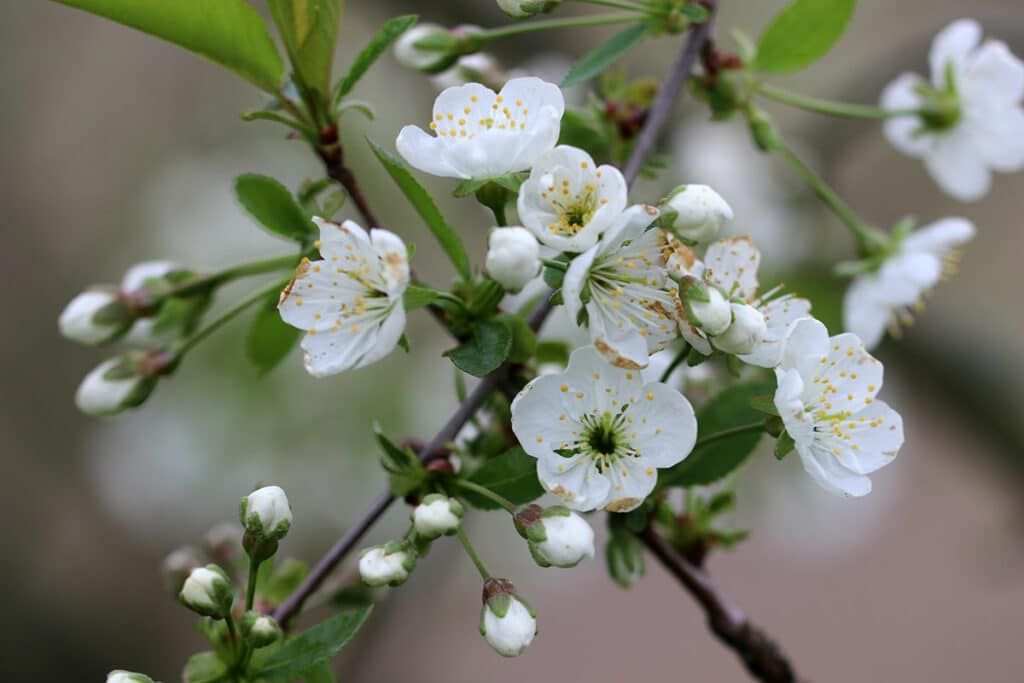 Der Apfelbaum ist aufgeblüht. Nun summen alle Bienen.